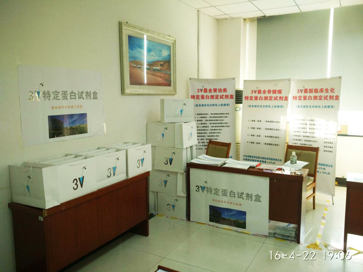 2016年展会于4月23日-25日正式召开。3V生物在会议召开前进行了精心的布展,除了精美的印刷宣传外,3V生物也是会场播放公司宣传片的企业,该宣传片具有震撼力,吸引广大客户驻足观看。本次会议,到展台签到单位共计37家,其中医院31家,代理商6家,会议取得了良好的宣传进展。多家用户就3V生物的产品质量和精美的产品包装而前来洽谈合作。