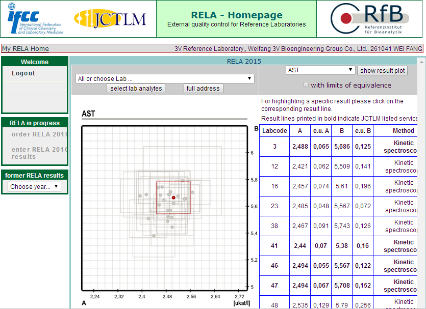 参考实验室能力验证(IFCC-RELA)是由国际临床化学联合会(IFCC)主办、德国临床化学和检验医学学会(DGKL)承办,是全球具权威的实验室能力验证计划之一,代表了临床化学与检验医学的高水平,是国际临床化学与检验医学领域公认的高水平的质量评价活动。该活动每年进行一次,目前全球仅有60余家有实力的临床单位和诊断厂商参加。
